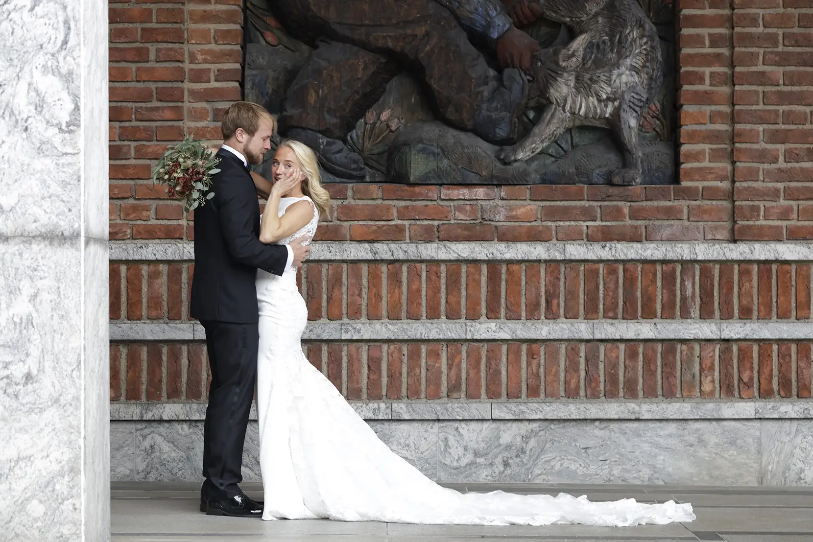 Det dere får: heldags fotografering fra morgenens forberedelser til kveldens fest, to planleggingsmøter i forkant — ett rett etter trekningen og ett nærmere bryllupsdagen — og ferdig redigerte bilder i full oppløsning, uten vannmerker og klare til bruk. Samlet verdi: 75 000 kr.