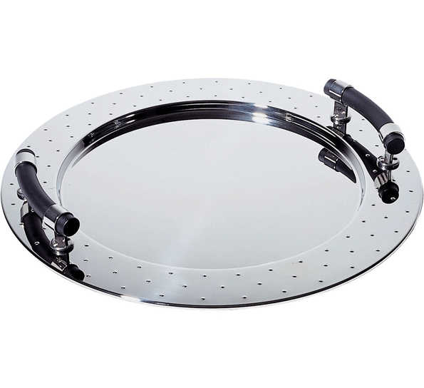 Serveringsfat rundt m sorte håndtak fra Alessi