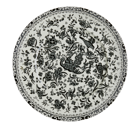 Klassisk eleganse fra Burleigh. Dette serviset, Black Regal Peacock, har et mønster med orientalske fugler i sort og grått og er et rikt, dekorativt servise som bringer en sjarm til borddekkingen. Serviset er en moderne og elegant versjon av en Burleigh-klassiker.