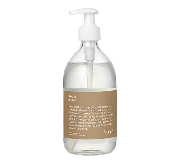 Denne oppvasksåpen fra Ferm Living renser effektivt tallerkener, gryter og panner og er samtidig et dekorativt element på kjøkkenbordet. Den milde såpen kombinerer noter av sitrus og salvie med den avrundede duften av lavendel og kokosnøtt. Leveres i en påfyllbar glassflaske med pumpe. Det populære, danske merket Ferm Living finner du i våre butikker og her i nettbutikken, hvor du fritt kan velge å få varen sendt hjem eller pakket som gave og sendt direkte til gavemottaker.