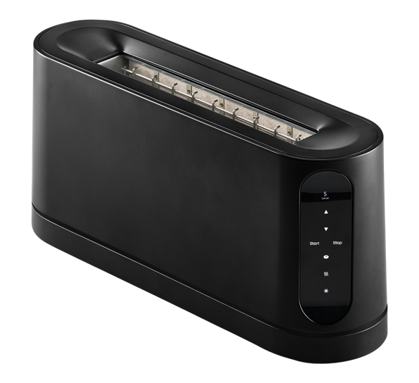 Oppdag den nye Jacob Jensen Long Slot Toaster – en kombinasjon av moderne design og funksjonalitet. Denne brødristeren i sort utstråler en stille eleganse. Grensesnittet aktiveres når hånden din nærmer seg, og forsvinner igjen når det ikke lenger er nødvendig, noe som gir en sømløs og intuitiv brukeropplevelse.