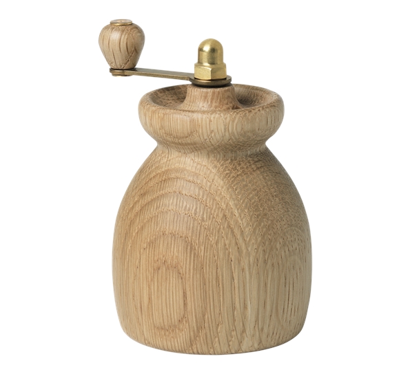 Organisk og lekker pepperkvern i Kay Bojesens Menageri-serie. Kvernen måler 9,3 cm i høyden og er dreid av sammensatte stykker av eik, slik at vi kan se treets fine årer. Treet har en godkjent overflatebehandling som gjør det mindre utsatt for fargeforurensende matvarer. Inspirasjonen til settet kommer fra husholdningsprodukter designet av Kay Bojesen tilbake på 1940-tallet, hvor han produserte vakre og nyttige treprodukter.
