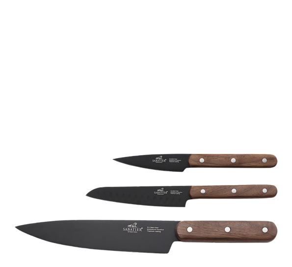 Phenix Walnut knivsett er et eksklusivt sett med tre kniver i Lion Sabatiers verdenskjente kvalitet. Knivbladene er laget av sterkt rustfritt stål (5Cr15MoV) med en titanbelagt overflate, noe som gir eksepsjonell skarphet og lang levetid. De ergonomiske håndtakene i eksklusivt valnøttre gir et behagelig grep og et tidløst uttrykk.
