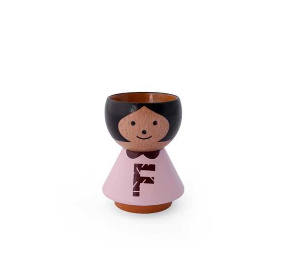 Bordfolk A-Z fra Lucie Kaas består av hele 52 ulike eggeglass, alle bokstavene fra A-Z i både gutt- og jenteversjon. Dette eggeglasset er jenten med F på, og er ca 7 cm høyt. Eggeglassene er laget av bøk, og dekoren er håndmalt. Bordfolk eggeglass er en kjempefin gave til både barn og voksne, hvem vil vel ikke ha sitt eget eggeglass som attpåtil ser så fint ut enten det står på frokostbordet eller til pynt i en hylle på kjøkkenet? Velg mellom å få ditt nye Lucie Kaas Bordfolk eggeglass sendt hjem til deg fra nettbutikken, eller hent din favoritt i din lokale Designforevigbutikk.