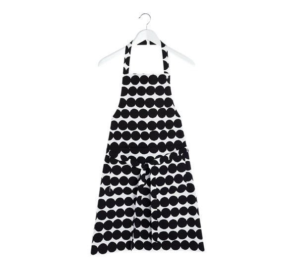 Räsymatto forkleet fra finske Marimekko er laget av kraftig bomull og har en frontlomme, tre nakkebånd med trykknapper og midjestropper. Inspirasjonen til Räsymatto-mønsteret er hentet fra kolonihagearbeid og er knyttet til aktuelle temaer som bærekraftig livsstil og gleden ved å jobbe med hendene. Marimekko ble grunnlagt i 1951 av den fremsynte kvinnen Armi Ratia. Marimekko ble en av verdens første virkelige livsstilsmerker som kombinerte mote, vesker og tilbehør samt interiør i et tidløst, bærekraftig og funksjonelt design.