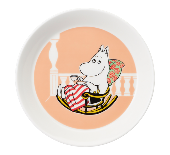 Denne Mummi-asjetten viser en mild og forståelsesfull Mummimamma. Hun har en positiv holdning til livet, forskjellige mennesker og deres livshistorier, og hun ønsker alltid alle velkommen i hjemmet sitt. De nye motivene som brukes på Mummimamma-serien er basert på tegneserien "Mummi-vinter" (1959) og "På lissom" (1956).