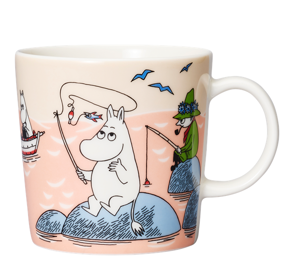 Fiske er Mummitrollenes favorittsyssel enten de fisker med garn eller fiskestang. Snusmumrikken som bor i et telt ved elven, spiser hovedsakelig fisk han selv fanger og tilbereder over bål. I en av historiene drar Mummifamilien til en øy med et fyr. De slår seg ned for å bo i fyret og Mummipappa blir fyrvokter. Livet på den karrige øya er langt fra romantisk – de er fullstendig overlatt til været og havets makter. Etter en stormfull natt finner Tootikki ut at bølgene har skylt fisk inn i jettegrytene på øya. Sesongkruset fra Mummi er en perfekt gave til små og store Mummifans, en liten hverdagsoverraskelse. Mummikrusene tåler fint oppvaskmaskin, vi anbefaler alltid lite pulver og vask på lav temperatur.