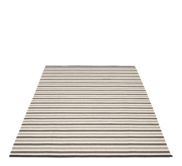 Teo fra det svenske merket Pappelina er en serie med lekre, håndvevde matter med noen elegante, store ruter. Mattene med sine trendy farger kommer i ulike størrelser. Denne Teo-matten måler 230x320 cm og kommer i den nydelige fargekombinasjon varmgrå, kull og vanilje.