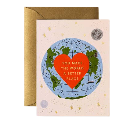 Trenger du et kort til bursdagen, eller kanskje bare til en hyggelig hilsen? Vi har et utvalg kort fra Rifle Paper Co. på lager! Kortene fra Rifle Paper Co. er trykket på FSC-sertifisert papir av høy kvalitet, og alle kortene er blanke på innsiden med god plass til å skrive din egen hilsen. Matchende konvolutt til kortet You make the world better følger selvsagt med. Ønsker du vi skriver en hilsen i kortet for deg kan du legge igjen en beskjed til oss i handlekurven.
