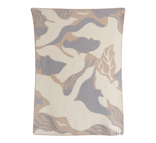 Alle Røros sine ullpledd er produsert i Norge av 100% norsk lamull. Det liker vi! Fugl og fisk-pleddet er designet av byHands ved Sandra Blikås for Røros Tweed og har et surrealistisk mønster. Røros Tweed samarbeider med flere kjente, norske designere som for eksempel Kristine Five Melvær, Anderssen & Voll og Snøhetta.