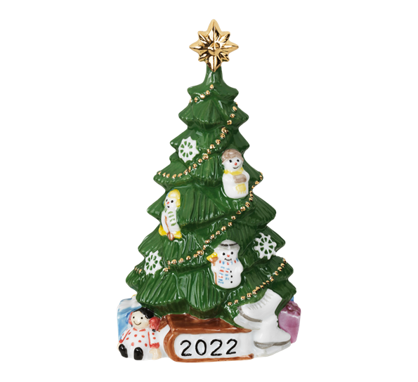 Royal Copenhagen samlerartikler er en historisk og høyt elsket tradisjon. Hvert års motiv er en fortelling om dansk kulturhistorie, og som små tidslommer har de karakteristiske, blå samlerartiklene og de sjarmerende julenisse- og juletrefigurene, prydet utallige hjem i generasjoner. Årets juletre 2022 viser pakkene under treet, og er dekorert med glittrende snøkrystaller. Juletreet er 14 cm høyt og er designet av Sven Vestergaard.