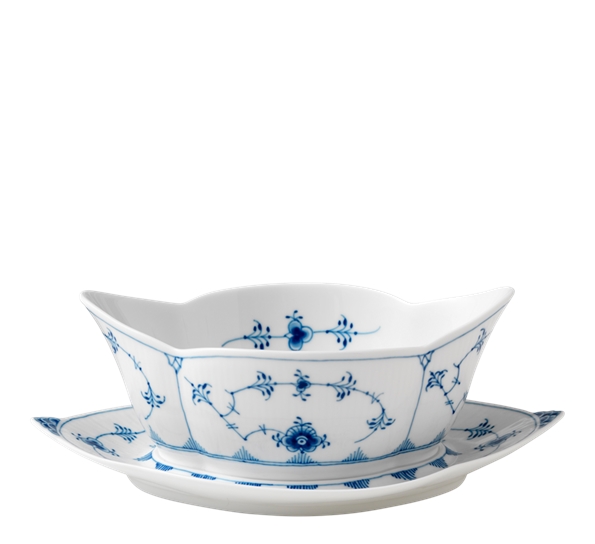 Musselmalt Riflet fra Royal Copenhagen er over 240 år gammelt, men like populært enda. Serviset males for hånd, det ligger solid håndverk og kjærlighet i hver eneste del. Det finnes et bredt utvalg deler i serien, både middagsservise og kaffeservise. Dette sausnebbet rommer 55 cl.