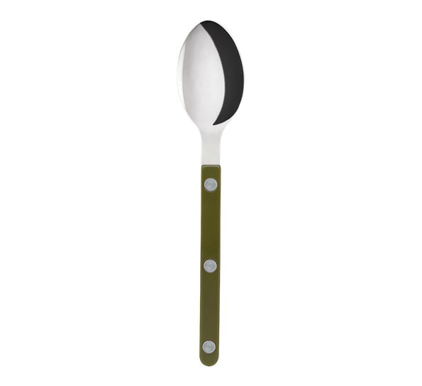 Bistrot-serien i sort fra franske Sabre Paris er inspirert av den unike atmosfæren til franske bistroer. Bestikket er klassisk, retro, småfrekt og elegant, og passer til både hverdag og fest. Laget av rustfritt stål med akrylhåndtak av høy kvalitet, på Sabre Paris sin egen fabrikk i Frankrike. Bistrot teskje i den nydelige fargen Green Fern er 15,2 cm lang og ligger veldig bra i hånden. Ønsker du fullt sett med både spiseskjeer, teskjeer, kniver og gafler, selges Bistrot-bestikket også som et bestikksett på 24 deler, i både sort og andre farger.