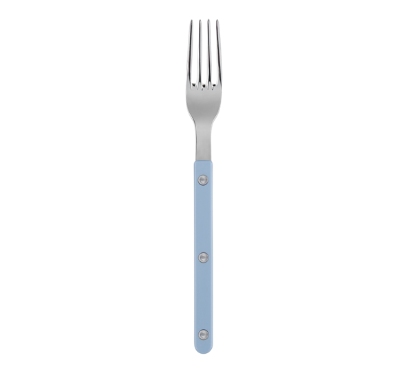 Bistrot-serien i sort fra franske Sabre Paris er inspirert av den unike atmosfæren til franske bistroer. Bestikket er klassisk, retro, småfrekt og elegant, og passer til både hverdag og fest. Laget av rustfritt stål med akrylhåndtak av høy kvalitet, på Sabre Paris sin egen fabrikk i Frankrike. Bistrot spisegaffel i en nydelig pastellblå farge er 21,6 cm lang og ligger veldig bra i hånden.