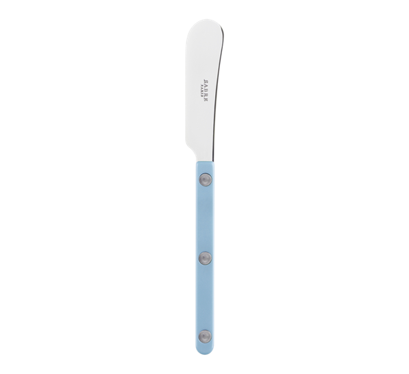 Bistrot-serien utførelsen Buffalo fra franske Sabre Paris er inspirert av den unike atmosfæren til franske bistroer. Bestikket er klassisk, retro, småfrekt og elegant, og passer til både hverdag og fest. Laget av rustfritt stål med akrylhåndtak av høy kvalitet, på Sabre Paris sin egen fabrikk i Frankrike. Bistrot smørekniv i en nydelig pastellblå farge er 14 cm lang og ligger veldig bra i hånden. Ønsker du fullt sett med både spiseskjeer, teskjeer, kniver og gafler, selges Bistrot-bestikket også som et bestikksett på 24 deler, i både pastellblå og andre farger.