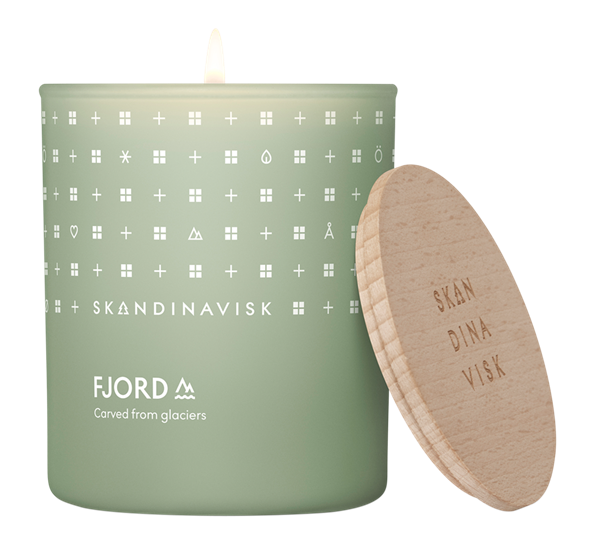 Duftlyset Fjord fra merket Skandinavisk er laget av kortreist, bærekraftig vegetabilsk voks med veke i ren bomull. Det inngraverte lokket er laget av bøk fra FSC-sertifisert skog. Brennetid: 45 timer. Produsert i Frankrike.