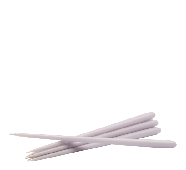 Disse hånddyppede STOFF Nagel blomsterlysene fra danske Ester & Erik er produsert i ren parafinvoks og har en lang og konisk form med en kegleformet bund, som gjør at de passer perfekt i STOFF Nagel lysestagerne. Disse lysene som er 29 cm lang har en brennetid på 4 timer noe som er ca 30% lengre enn vanlige lys. Lysene drypper ikke, er selvslukkende og brenner ut sakte slik at det ikke blir rester igjen i lysestakene. Hver pakke inneholder 6 lys og denne varianten har fargen lys lavendel. Werner STOFF lysestakene får du kjøpt HER!