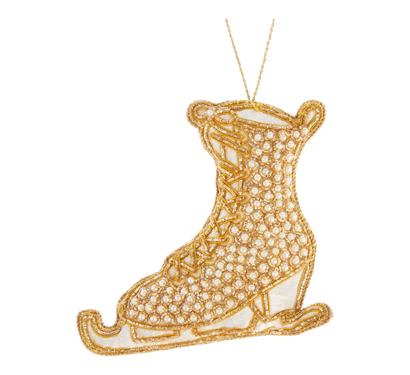 Denne nydelige skøyten med broderinger i gull og perler vil skinne på juletreet dit, og skape forventninger hvert år det tas frem igjen.