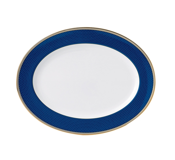 Hibiscus fra Wedgwood er et hvitt servise med en nydelig blomsterdekor. Inspirasjonen til serviset er hentet i Wedgwoods arkiver, helt tilbake til et mønster fra 1810. Den mørkeblå dekoren står i flott kontrast til dekoren i gull. Det finnes både middagsservise og kaffeservise i serien. Dette serveringsfatet har en lengde på 39 cm, og tåler fint oppvaskmaskin. Vi anbefaler alltid lav temperatur i maskinen og lite pulver. Hibiscus finner du i utvalgte Designforevigbutikker, og husk at vi gjerne pakker inn i gavepapir for deg, helt gratis selvsagt!