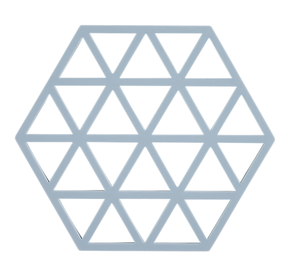 Triangles bordskåner i silikon fra danske Zone har et grafisk design som inviterer deg til å skape et dekorativt mønster på bordet, gjerne med farger ton-i-ton. Bordskåneren finnes i mange farger og flere varianter, denne er i fargen sky og måler 16x14 cm. Triangles er fin å kombinere sammen med Hexagon bordskåneren også fra Zone, som har de samme målene, og sammen skaper de variasjon i designet. Unngå brentflekker på bordet ditt med bordskånerne fra Zone som er varmebestandige opp til 250 grader og silikonet gjør den sklisikker.